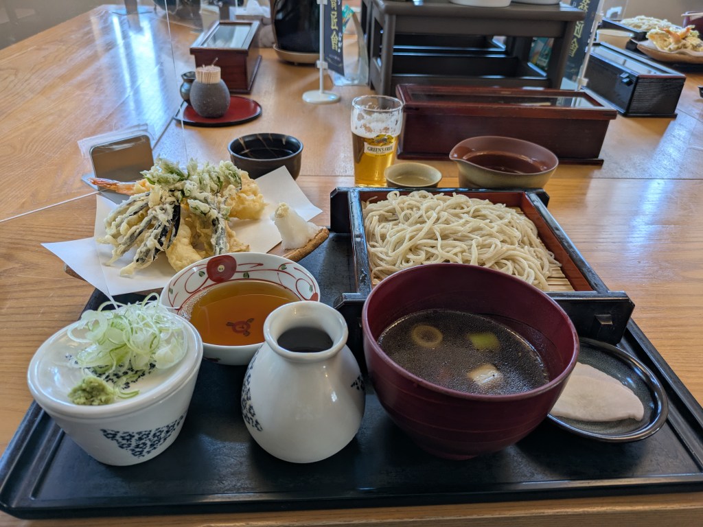 美味しく地酒・会津娘と天ぷらとお蕎麦を堪能。